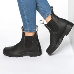 Hochwertige Ankle Boots auf besonderer Plateausohle mit Mokassin Naht, Schnürung und einer Schnalle am Lederband als Detail