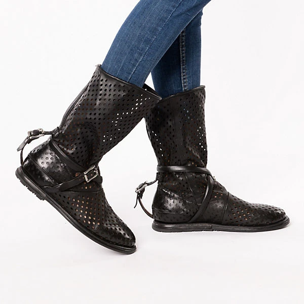 Die Cut Out-Stiefeletten von A.S.98 sorgen stets für einen trendigen Look. Für ein angenehmes Tragegefühl besteht die Decksohle aus Echtleder. Hochwertiges Rindsleder zeichnet dieses Paar aus. Die Schuhe schließen durch einen Reißverschluss.
