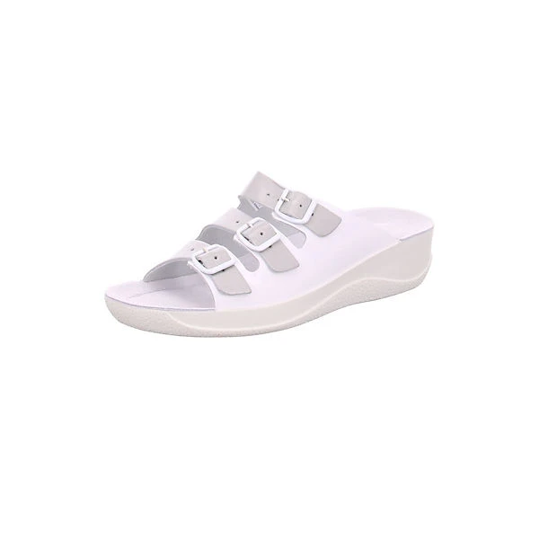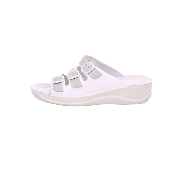 Damen Pantoletten von Beck aus einem hochwertigem Synthetikmaterial. Innen ist der Schuh mit Kunstleder augestattet. Der Schuh hat eine normale Weite. Der Keilabsatz hat eine Höhe von cirka 3 cm. Die Laufsohle ist aus Krepp. Über die paraktische Schließe kann der Schuh dem Fuß optimal angepasst werden. Die Schuhgröße fällt regulär aus.