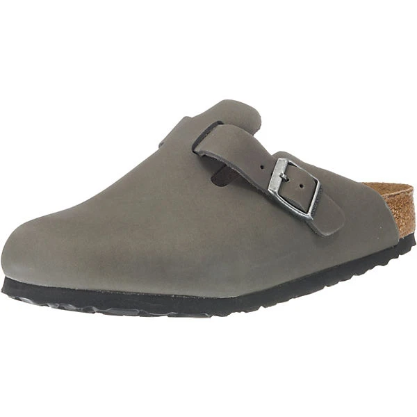 Der Clog Boston ist mit dem feinen Nubukleder als Obermaterial ausgestattet. Die Laufsohle aus EVA-Material verspricht eine angenehme Schrittdämpfung und ist resistent gegen beständige Hitze, Öle oder Lösungsmittel und durch die Weichbettung ist der Clog besonders weich und angenehm zu tragen. Für weiteren Tragekomfort sorgt das Birkenstock Fußbett aus Kork. Die Sandalen sind beliebt für Beruf und Freizeit.