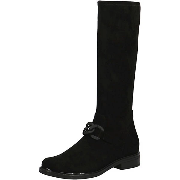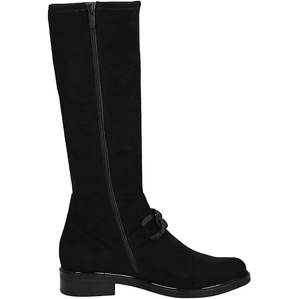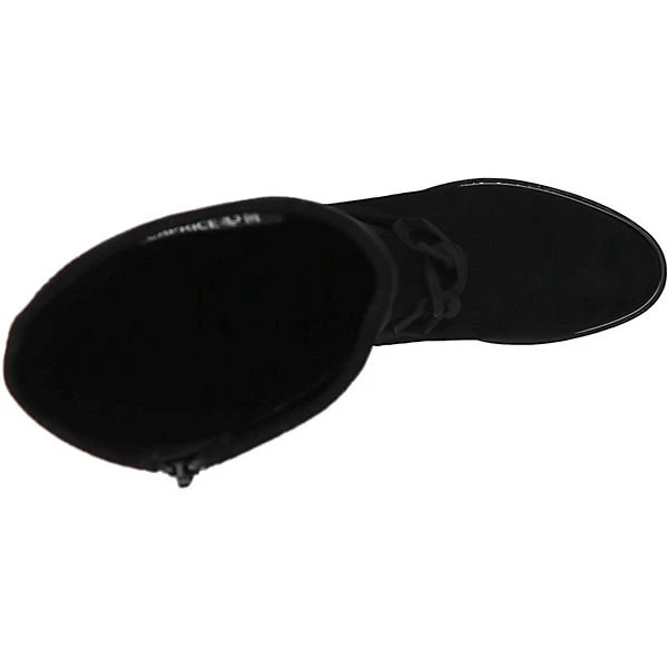 Dieser vegane Stiefel von Caprice ist aus Textil. Der 20 mm hohe Blockabsatz kombiniert mit der runden Schuhspitzelässt die Beine grazil wirken.