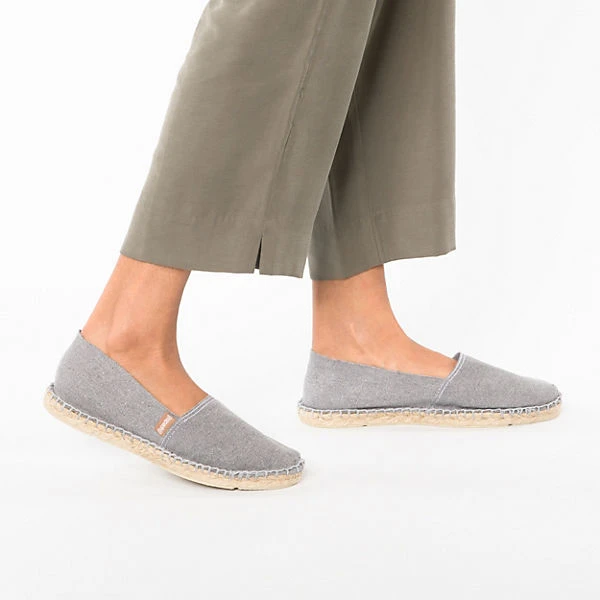 Bei den Espadrilles von Espadrij lóriginale kommt Urlaubs-Feeling auf. Die geflochtene Sohlenpartie ist markant abgesteppt und gibt dem sommerlichen Style seinen lockeren Signature Look. Perfekt für den Strand!