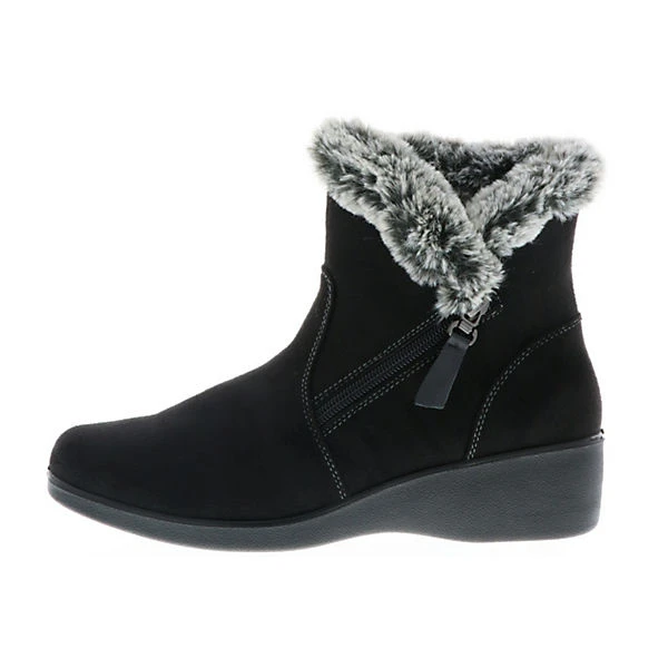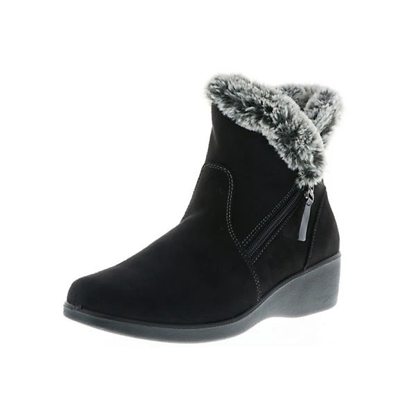 Diese Winterstiefeletten haben eine superweiche Kunstfellfütterung, welches die Füße schön warm hält. Der leichte Keilabsatz macht den Schuh zu einem bequemen Begleiter. Der an der Außenseite angebrachte Reißverschluss wertet den Schuh optisch zusätzlich auf und ermöglich so ein einfaches An- und Ausziehen der Stiefelette.