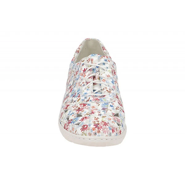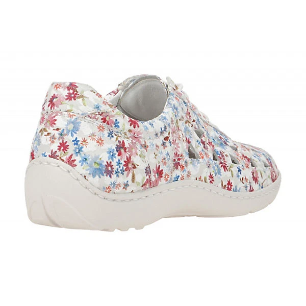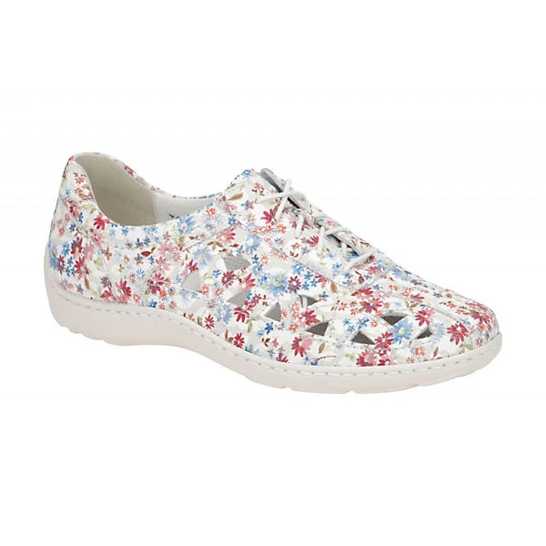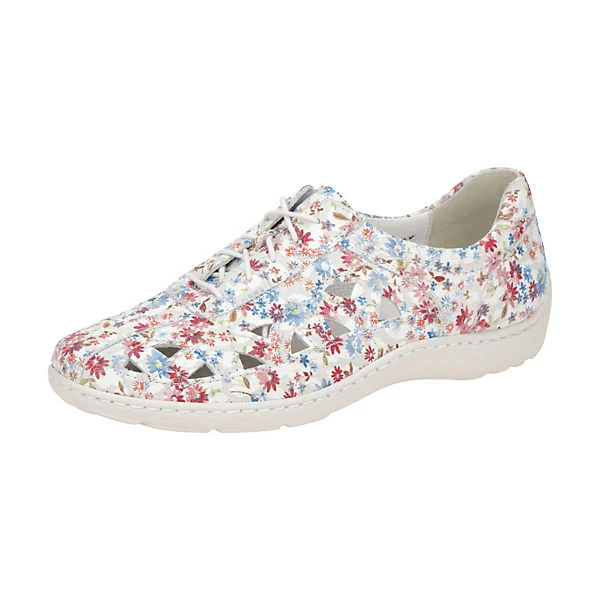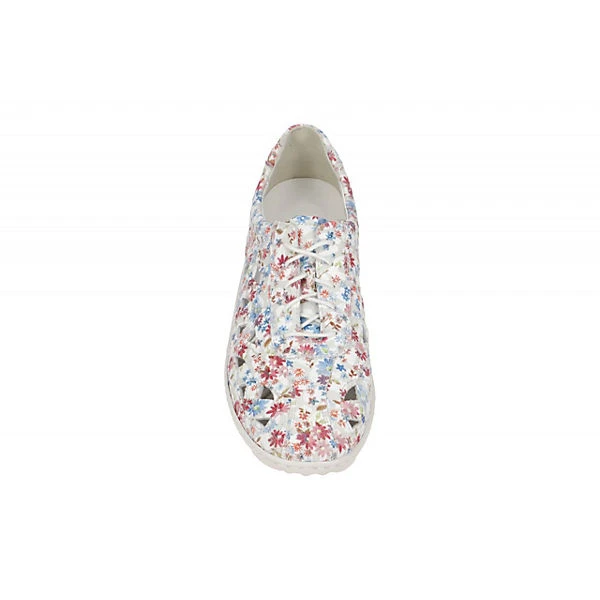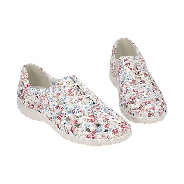 Hersteller: Waldläufer Hersteller Art-Nr.: 496003 129 150 Modellname: HENNI Machart: Damenschuhe – bequeme Schnür- Halbschuhe Farbe: weiß + grau + buntes Blumenmuster (weiss) Obermaterial: Echtleder – Nubuck (Fleur, struckturiert) Innenfutter: Echtleder und Textil Innensohle: Echtleder Komfort Fußbett Wechselfußbett: Ja – herausnehmbare Innensohle Laufsohle: PU-Laufsohle Verschluss: 5fach Schnürung Absatzart: flach – kein Absatz Schuhform: rund Größenhinweis: fällt normal aus Weitenangabe: H – Extra Weit