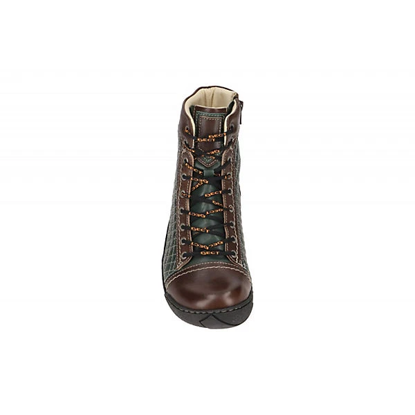Hersteller: Eject Hersteller Art-Nr.: 20237.002 Modellname: ICE Machart: Damen Stiefeletten – sportliche Stiefelette Farbe: dunkelbraun + dunkelgrün + schwarz (brown / green) Obermaterial: Echtleder – Glattleder Innenfutter: Echtleder – naturgegerbt Innensohle: Echtleder – naturgegerbt Wechselfußbett: Ja – herausnehmbare Innensohle Laufsohle: Gummisohle, mit „Eject“ Buchstaben Profil Verschluss: Schnürung und Reißverschluss Absatzart: flach – kein Absatz Schafthöhe: Knöchelhoch, ca. 14cm Schuhform: rund Größenhinweis: fällt normal aus Weitenangabe: G – normal Weite