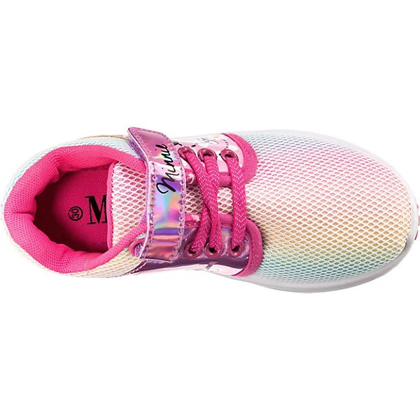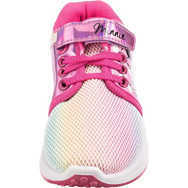 Diese Sportschuhe zeigen sich im auffälligen Disney Minnie Mouse-Design. Dank des Klettverschlusses kann das Schuhpaar zügig angezogen werden. Die textile Oberfläche unterstützt die Gestaltung des Modells.