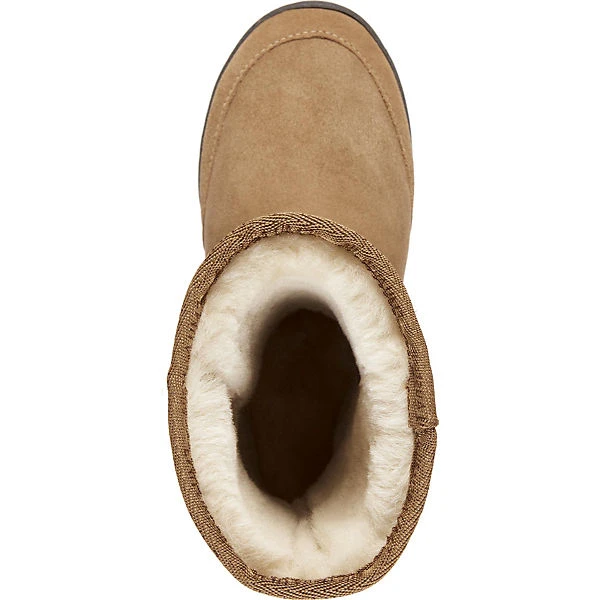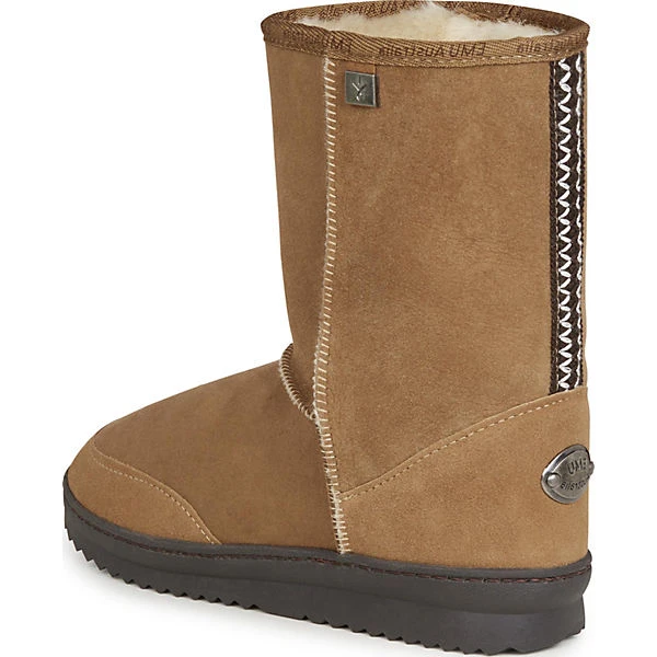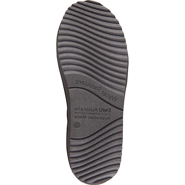 Auf Schritt und Tritt: Die Winterstiefel von EMU Australia dürfen zu keiner Gelegenheit fehlen. Das wärmende, feuchtigkeitsausgleichende Futter aus Lammfell gewährleistet ein hervorragendes Klima in den Schuhen. Das Obermaterial ist aus echtem Schafsleder. Dieses Modell kommt ohne Verschluss aus, sodass ganz bequem hineingeschlüpft werden kann. Damit der Komfort an feuchten Tagen nicht maßgeblich verringert wird, ist die Oberfläche wasserabweisend. Als praktisch erweist sich das herausnehmbare Fußbett.