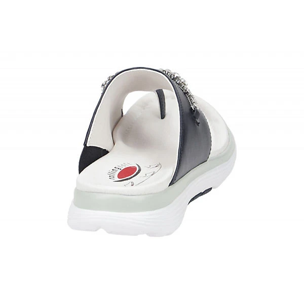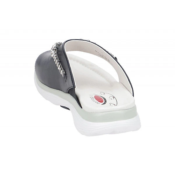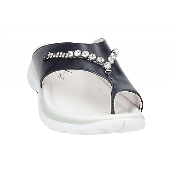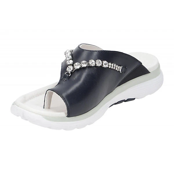 Hersteller: Gabor Hersteller Art-Nr.: 26.812.56 Modellname: ROLLINGSOFT Machart: Damenschuhe – bequeme Pantoletten Farbe: dunkelblau + grau + Sohle in weiß (midnight (Deko)) Obermaterial: Echtleder – Glattleder (Kalb – Foulardcalf) Innenfutter: Echtleder – weich gepolstert Innensohle: Echtleder Komfort Fußbett Wechselfußbett: nicht herausnehmbare Innensohle Laufsohle: Polyurethan (PU) – extra leicht und flexibel Absatzart: Keilabsatz / Wedge, Keil ca. 1,5cm Schuhform: rund Größenhinweis: fällt normal aus Weitenangabe: G – normal Weite