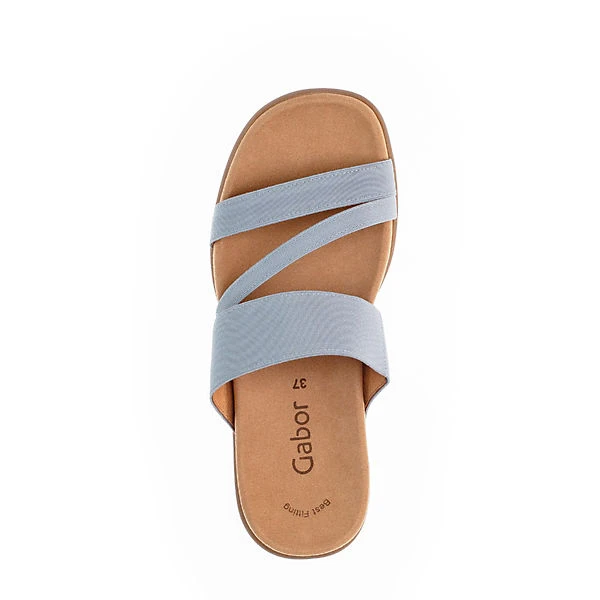 Für ein bequemes Tragegefühl: Die Komfort-Pantoletten von Gabor. Die textile Oberfläche ergänzt den Look des Paares. In die Schuhe kann schnell und einfach hineingeschlüpft werden.