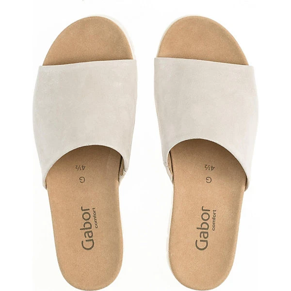 Für das bestmögliche Tragegefühl: Die Komfort-Pantoletten der Marke Gabor. Glattes Leder zeichnet dieses hochwertige Paar aus. Dieses Schuhpaar kommt ohne jeglichen Verschluss aus, sodass im Handumdrehen hineingeschlüpft werden kann. Das Textil-Futter aus Microfaser passt sich optimal an den Fuß an und ist zudem besonders anschmiegsam.