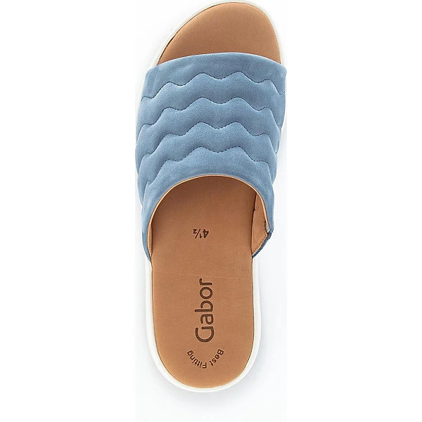 Praktisch und alltagstauglich: Die Pantoletten von der Marke Gabor begleiten Sie perfekt durch den Tag. Das Obermaterial zeichnet sich durch das feine Leder aus. In die Schuhe kann schnell und einfach hineingeschlüpft werden. Das Fußbett besteht aus natürlich atmungsaktivem Echtleder, das ein komfortables Tragegefühl begünstigt.