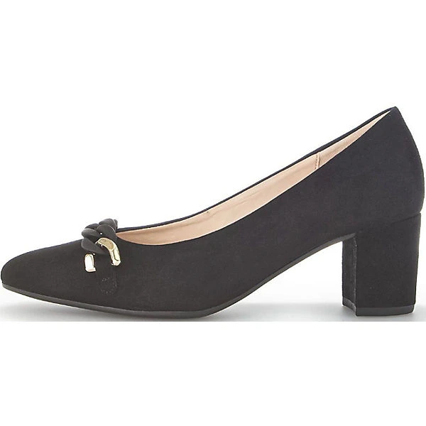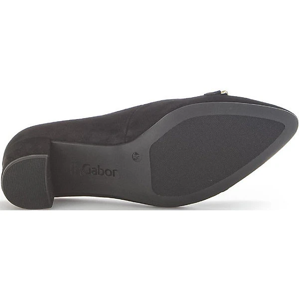 Ein ganz besonderes Glanzstück erhältst du mit diesem geschmackvollen Pumps von Gabor. Der Schuh aus hochwertigem Veloursleder wird durch ein feines Ketten-Detail am Vorderblatt zum absoluten Hingucker. Ein Blockabsatz in moderater Höhe in Kombination mit einer gepolsterten Decksohle garantiert den ganzen Tag über hohen Tragekomfort. Dieser klassische Pump ist die perfekte Ergänzung zu eleganten Outfits!