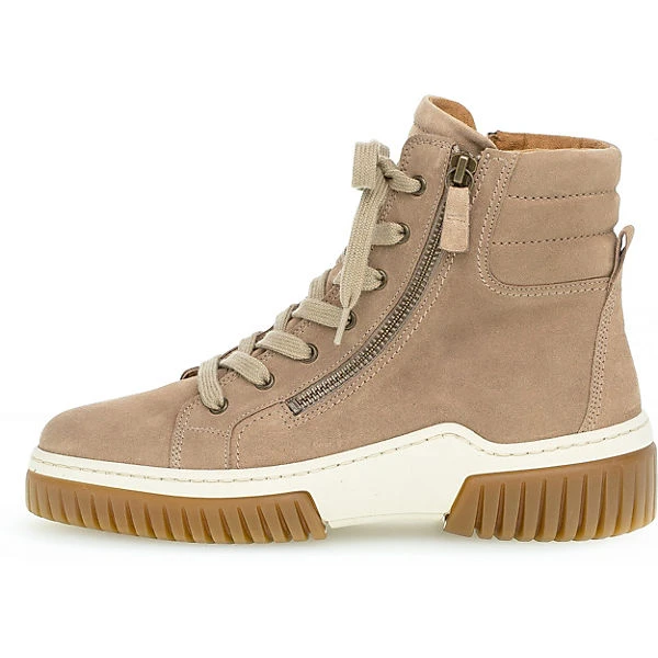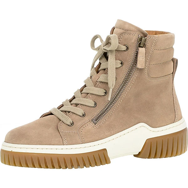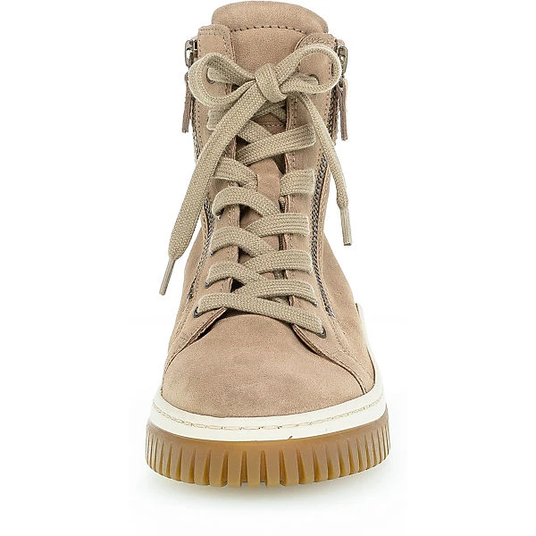 Die Schnürstiefeletten von Gabor sorgen stets für einen perfekten Auftritt. Das Obermaterial zeichnet sich durch das echte Leder aus. Das Modell kommt ohne jeglichen Verschluss aus, sodass im Handumdrehen hineingeschlüpft werden kann. Die Decksohle besteht aus atmungsaktivem Echtleder, das ein komfortables Tragegefühl unterstützt.