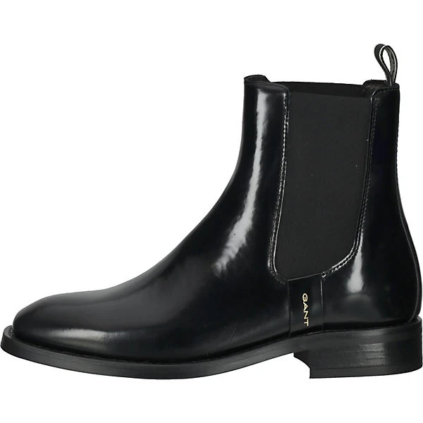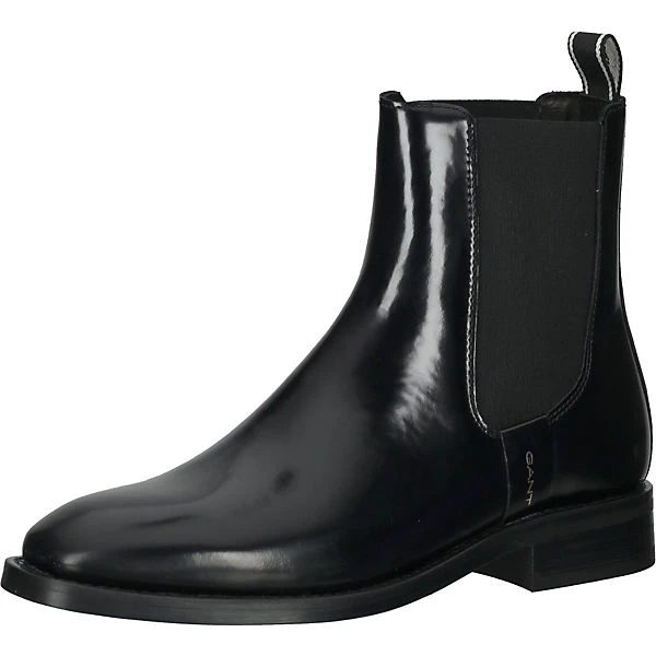 Diese hochwertige Stiefelette der Marke GANT kommt aus wertigem Leder in glänzender Optik und mit Elastikeinsatz am Schaft daher. Das Modell Fayy besticht mit herausragender Qualität und einer verstärkten Zehen- und Fersenkappe. Im hinteren Bereich befindet sich eine Einstiegschlaufe, die als Hilfe dient.