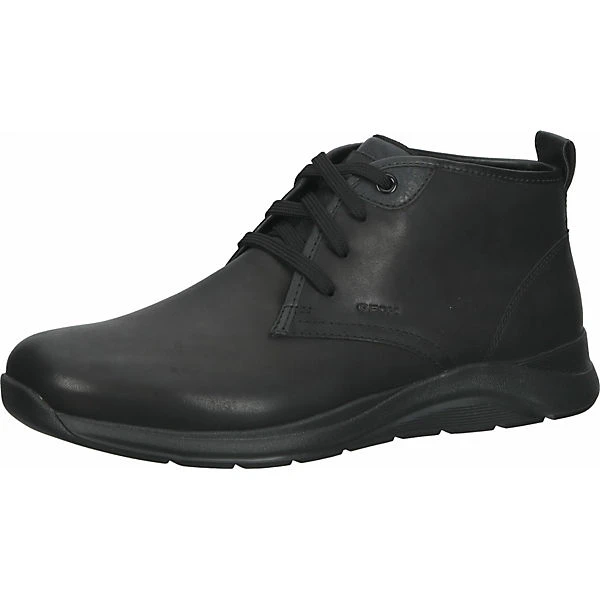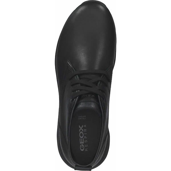 Knöchelhoher Schnürer von Geox aus Glattleder. Der Schuh, der atmet – Die Gummisohle ist perforiert und mit einer Spezialmembrane mit Mikroporen ausgestattet. Diese ermöglicht eine natürliche Transpiration und verhindert, dass Wasser eindringt. Die Decksohle lässt sich bei Bedarf herausnehmen.