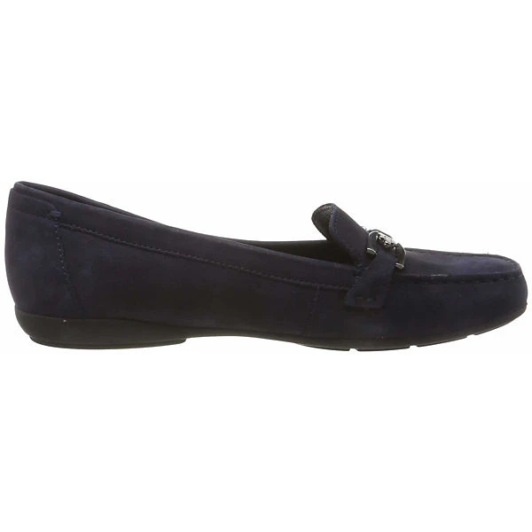 Damen Slipper von Geox aus angenehm weichem und hochertigem Leder. Innen ist der Schuh mit einem cromfrei gegerbtem Leder ausgestattet. Der Schuh hat eine normale Weite. Der Absatz ist durchgehend flach. Die Laufsohle ist aus Krepp. Die Schuhgröße fällt regulär aus.