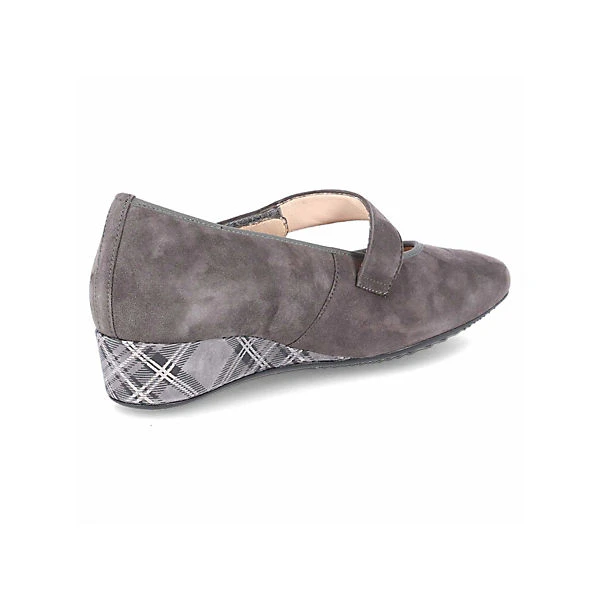Flotter Pumps von HASSIA aus einem feinen hochwertigem Veloursleder. Innen ist der Schuh mit einem cromfrei gegerbtem Leder ausgestattet. Der Schuh verfügt über eine etwas breitere Weite. Der Keilabsatz hat eine Höhe von cirka 4 cm. Die Laufsohle ist aus Gummi. Der Klettverschluss zum einfachen und bequemen an- und ausziehen sorgt für einen guten Halt.Ebenfalls ist eine stufenlose Anpassung an den Fuß möglich. Die Schuhgröße fällt regulär aus.