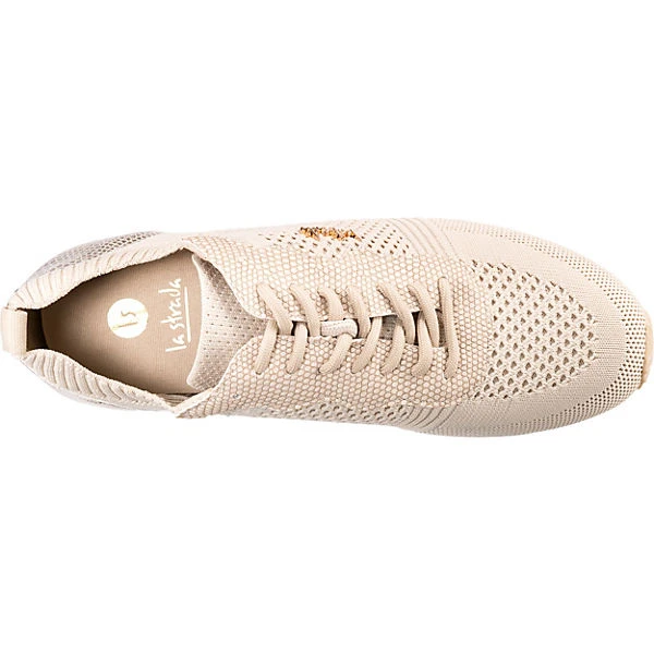Basis-Text (Texter) Praktisch und alltagstauglich: Die Low Sneakers von der Marke La Strada© dürfen zu keiner Gelegenheit fehlen. Bei Bedarf kann die Decksohle einfach herausgenommen werden. Das dekorative Obermaterial aus einem Materialmix aus Textil bietet einen hohen Tragekomfort. Für einen sicheren Sitz sorgt der Schnürverschluss.