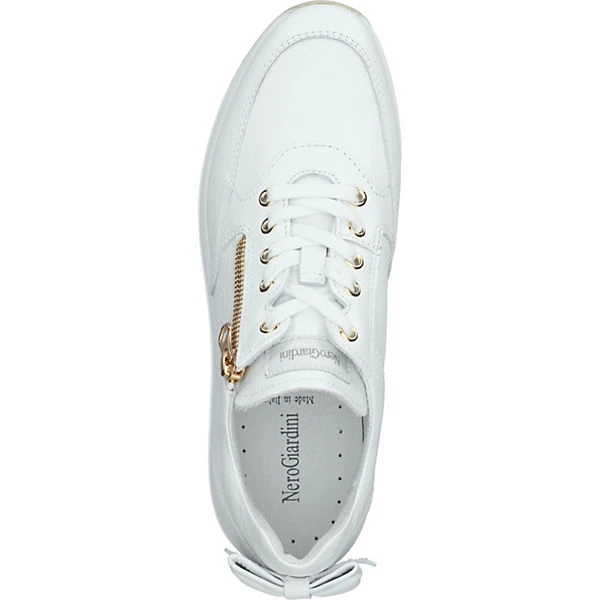 Stilsicher durch den Alltag geht es mit diesem modischen Plateausneaker aus hochwertigem Leder von Nero Giardini. Durch das puristische Design lässt sich das Modell zu unzähligen Looks kombinieren. Die feine Zierschleife an der Ferse macht den Schuh zum Blickfang! Die Schnürung sorgt für die perfekte Passform und durch den zusätzlichen Reißverschluss ist ein komfortables An- und Ausziehen garantiert.