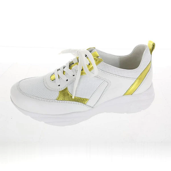 Damen Sneaker ‚H-Anita‘ von Waldläufer. Dieses Modell bietet tolles modisches Desgin mit den farblichen Akzenten und der weißen Sohle. Dazu kommt eine sehr komfortable Passform von Waldläufer und die hochwertige Verarbeitung von hochwertigem Material aus Leder im Obermaterial. So ergibt sich ein sehr angenehmes Tragegefühl, die Schuhweite ist H.