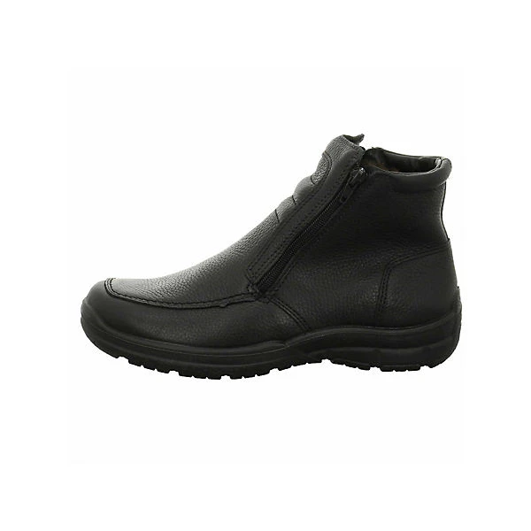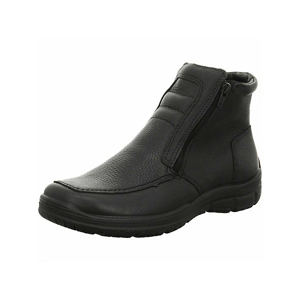 Herren Stiefel von Jomos aus angenehm weichem und hochertigem Leder. Innen ist der Schuh mit Kunstleder augestattet. Der Schuh verfügt über eine etwas breitere Weite. Der Absatz ist durchgehend flach. Die Laufsohle ist aus Krepp. Der praktische Reißverschluss ist ideal zum einfachen an- und ausziehen. Die Schuhgröße fällt regulär aus.