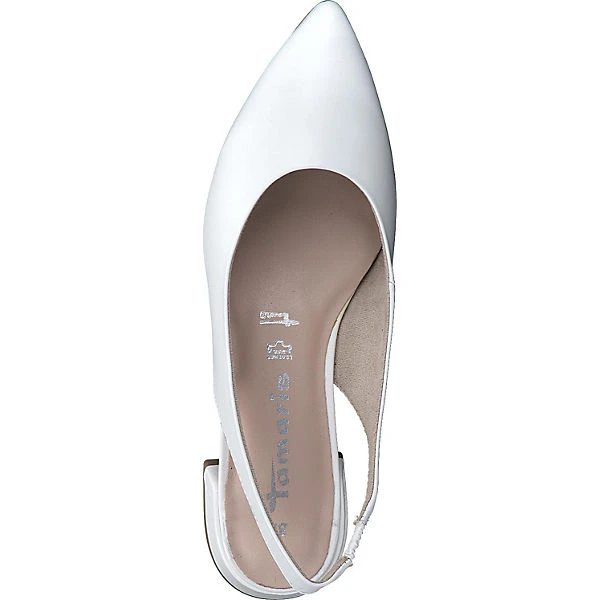 Ergänzen verschiedene Outfits: Diese stilecht gestalteten Sling-Ballerinas der Marke Tamaris. Die Decksohle besteht aus natürlich atmungsaktivem Leder, das ein komfortables Trageerlebnis begünstigt. Das Obermaterial zeichnet sich durch das feine Leder aus. Der Blockabsatz in dezenter Höhe bietet ein angenehmes Tragegefühl und einen modischen Touch. In die Schuhe kann bequem hineingeschlüpft werden.