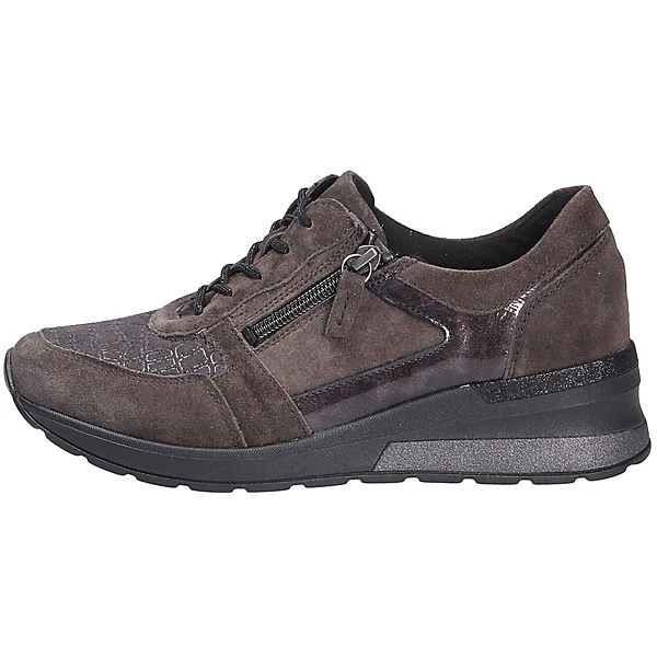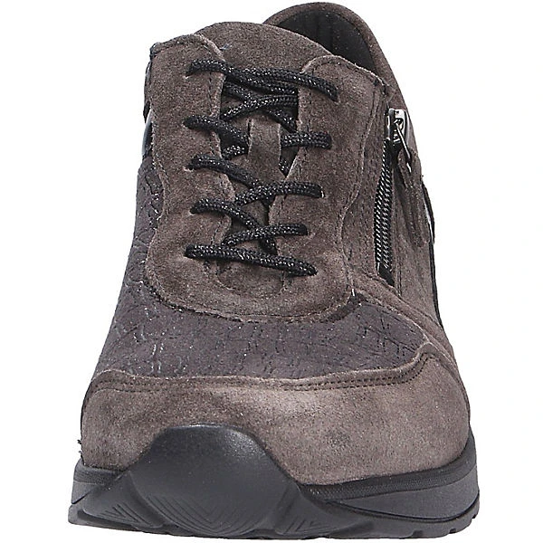 Schöner Comfort Damenschnürschuh der Marke Waldläufer aus einer hochwertigen Textil-Leder Kombination. Innen ist der Schuh mit einem elastischen sowie atmungsaktiven Textil augestattet. Die weich gepolsterte textile Einlegesohle ist auswechselbar und schafft somit Platz für eigene Einlagen. Auf diesen Schuh freuen sich besonders etwas breitere Füße:Die Weite H bietet hier ausreichend Platz. Der Keilabsatz hat eine Höhe von cirka 2 cm ,als Sohlenmaterial kommt ein griffiges und abriebarmes Gummi zum Einsatz. Über den Schnürverschluß ist eine optimale Anpassung an den Fuß möglich. Durch die runde Schuhspitze wirkt der Schuh dezent am Fuß und bietet genügend Platz für die Fußzehen. Die Schuhgröße fällt regulär aus.