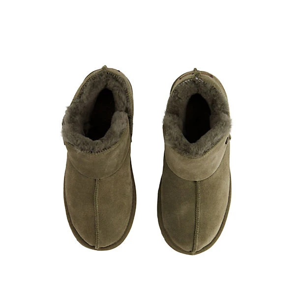 Der Hausschuh hat ein weiches, plüschiges und warmes Futter aus 100 % Schaffell, welches von australischen Merinoschafen stammt. Die Sohle ist robust und rutschfest, weswegen der Pantoffel auch für harte Böden, wie z.B. Fließen geeignet ist.